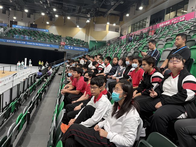 本校高中體育組及中學組精英運動員同學分別在2025年11月3及20日獲邀觀賞「第十五屆全國運動會手球及籃球」賽事,讓學生有機會置身全國性大型賽事,感受比賽現場的熱烈氣氛。